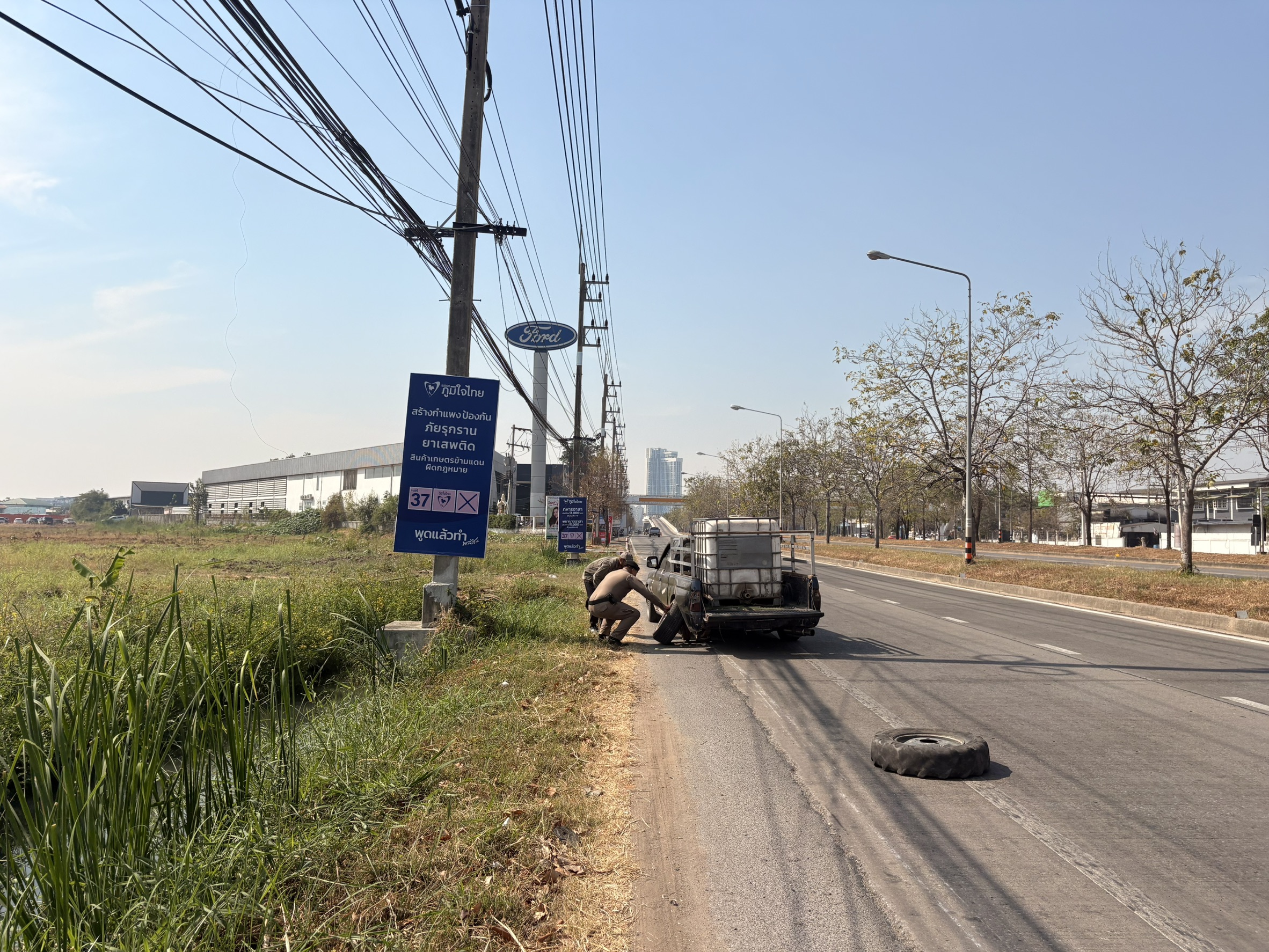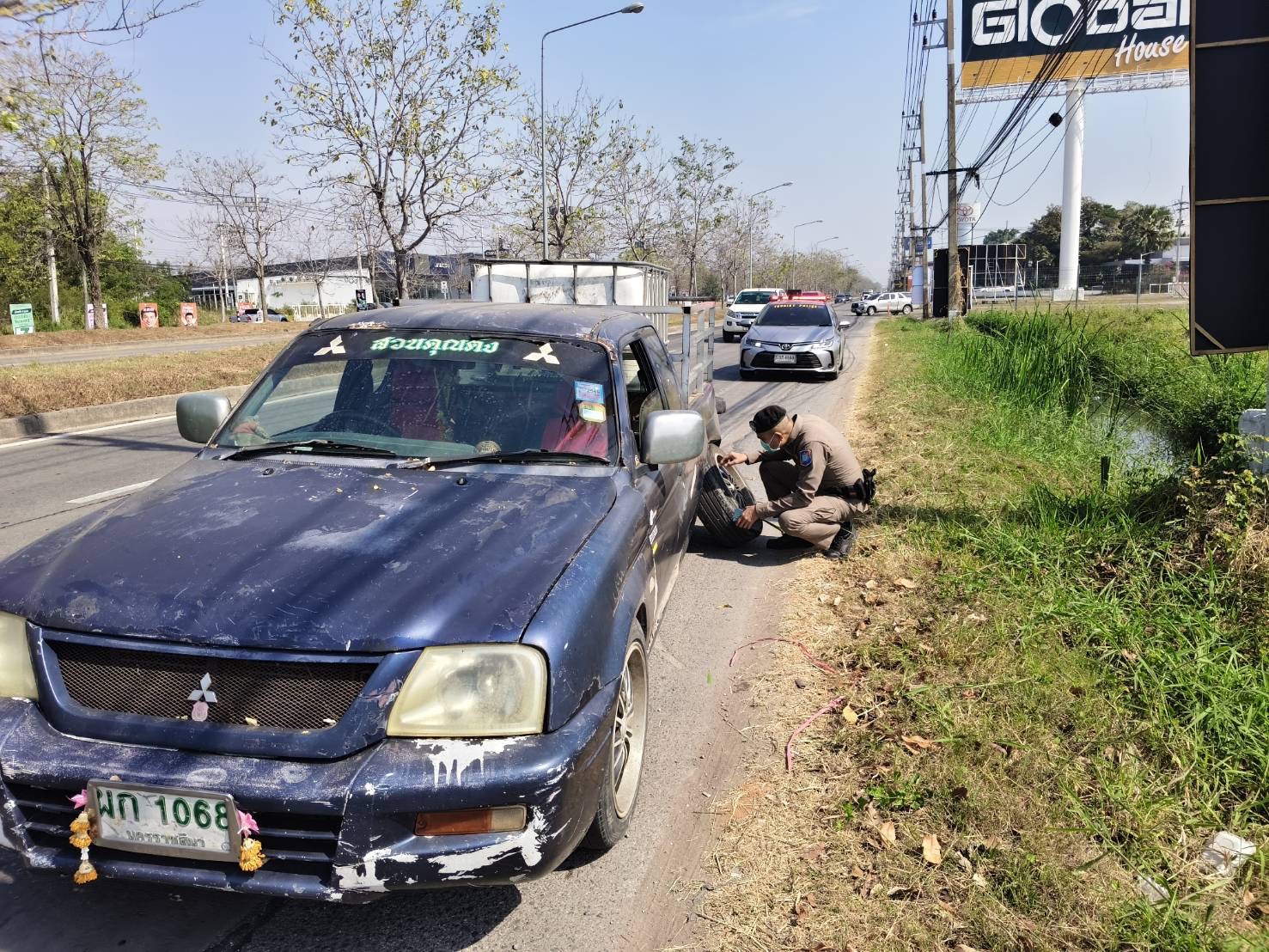 👮♂️ตำรวจท่องเที่ยวนครราชสีมา ขณะออกในเขตพื้นที่รับผิดชอบ พบรถกระบะของประชาชน จอดเสียริมไหล่ทางหน้าร้านจำหน่ายวัสดุก่อสร้างและของตกแต่งบ้านโกลบอลเฮ้าส์นครราชสีมา สาขาถนนมิตรภาพ-หนองคาย โดยล้อหลังซ้ายหลุดเพราะเพลาหัก จึงได้ให้ความช่วยเหลือเปิดสัญญาณไฟวับวาบและโทรประสานเรียกช่างมาซ่อมรถยนต์ให้