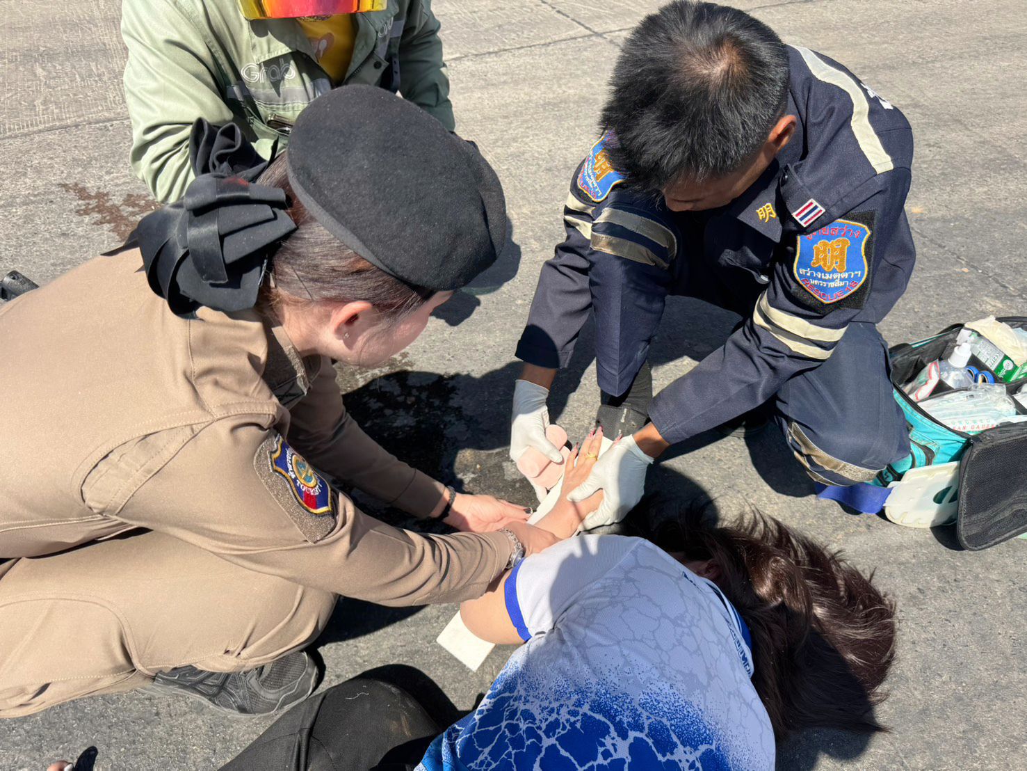 ตำรวจท่องเที่ยวนครราชสีมา พบอุบัติเหตุรถชนระหว่างรถกระบะตู้ทึบกับรถจักรยานยนต์