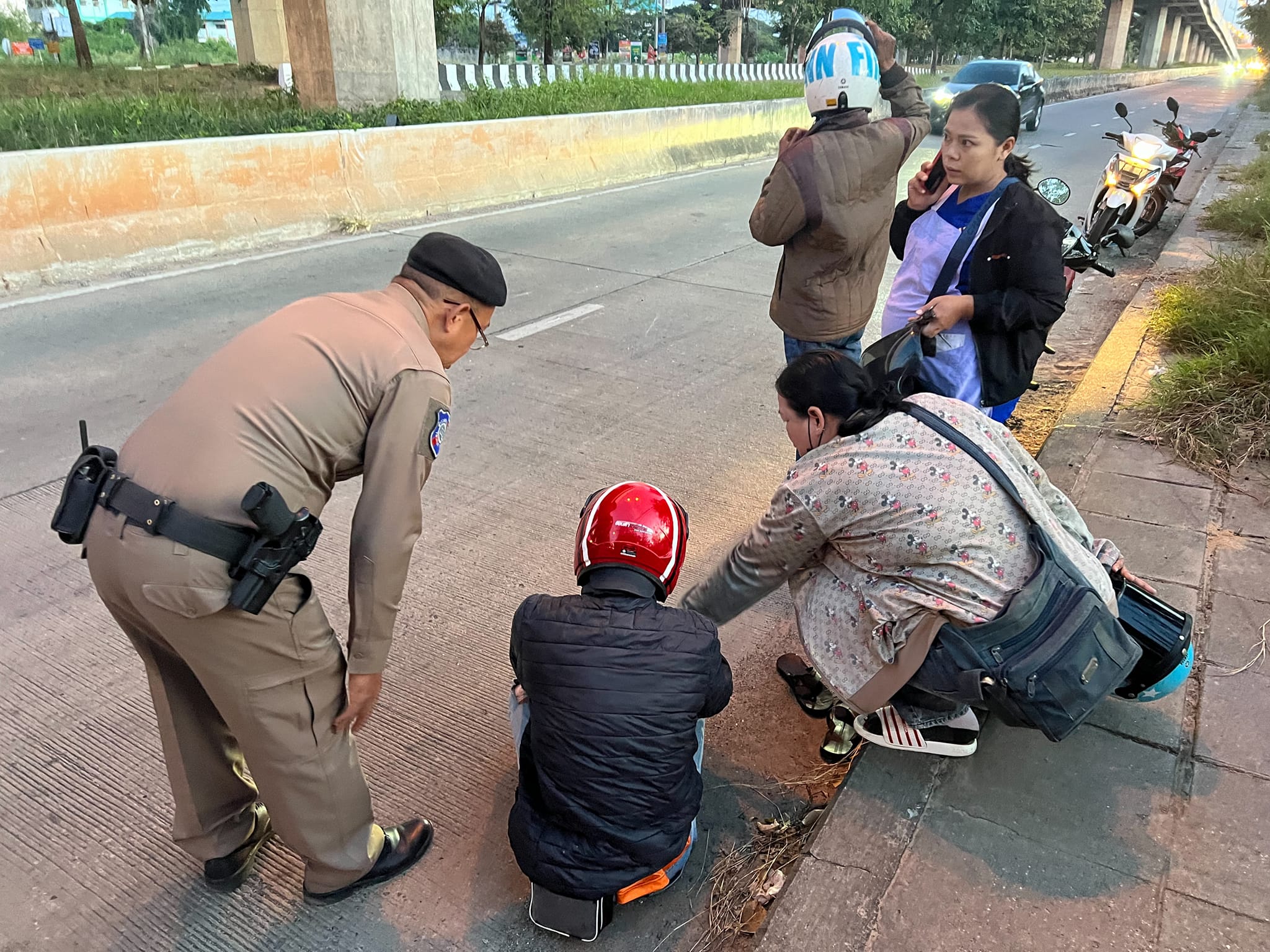 ในวันที่ 8 ต.ค.67 ชุดปฏิบัติการสายตรวจ ออกตรวจในเขตพื้นที่รับผิดชอบ ระหว่างทาง พบเหตุรถจักรยานยนต์ล้